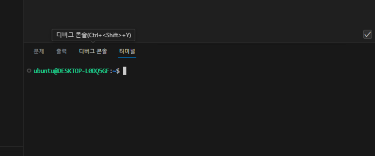 상단의 터미널 -> 새 터미널을 클릭하면 ubuntu bash shell 이 열리게 됩니다.